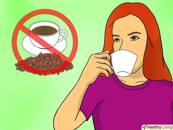 Не пийте напої, що містять кофеїн.кава дратує кишечник і негативно позначається на кровообігу. Постарайтеся пити каву і чай без кофеїну.- Кофеїн міститься в деяких видах чаю, тому якщо ви чутливі до кофеїну, переконайтеся, що чай, який ви заварюєте не містить кофеїн.