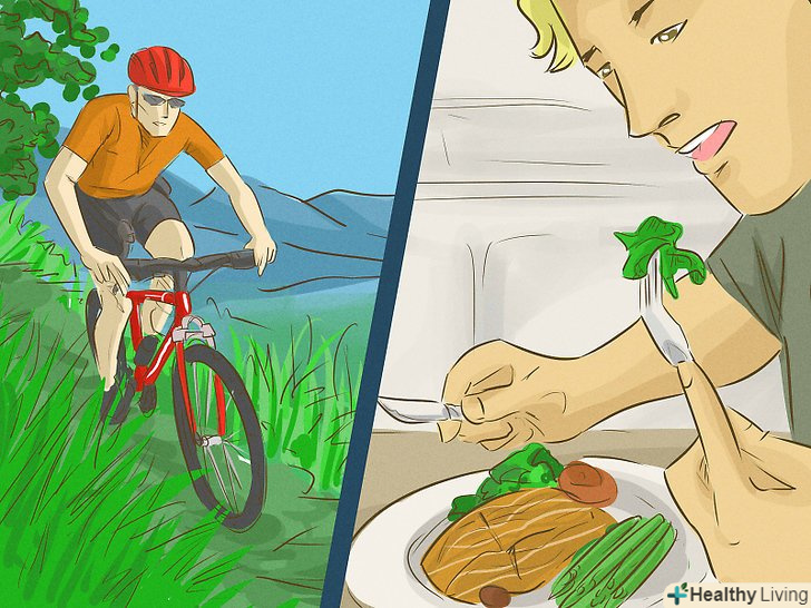 Підтримуйте здоровий раціон харчування і режим фізичних навантажень.хоча дієта і фізичні вправи не можуть запобігти психічним захворюванням, але за допомогою них можна контролювати свої симптоми. У разі важких психічних захворювань, наприклад, при шизофренії або біполярному розладі, особливо важливо дотримуватися постійного режиму і досить висипатися.[22]- Якщо ви страждаєте порушенням харчування, наприклад, анорексією, булімією або надмірним переїданням, то, можливо, вам потрібно бути особливо обачним з раціоном харчування і режимом фізичних навантажень. Порадьтеся з фахівцем, щоб упевнитися, що ви дотримуєтеся здорового характеру харчування.