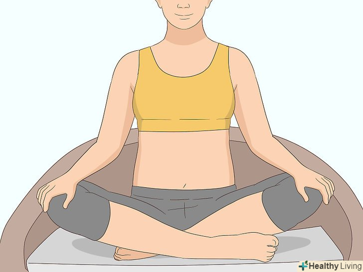 Сядьте зручно і тримайте спину прямо.для медитації необхідний комфорт, але переконайтеся, що ви не сутулитеся. Якщо сидіти рівно, вам буде простіше глибоко і рівномірно вдихати всім об'ємом легенів.[11]- Розташуйтеся в зручному кріслі або сядьте на підлогу на підстилку і схрестіть ноги.