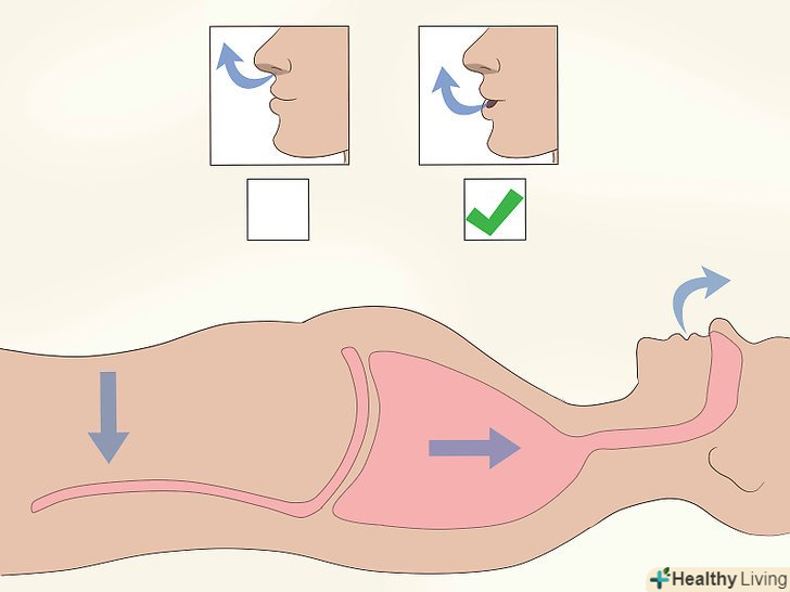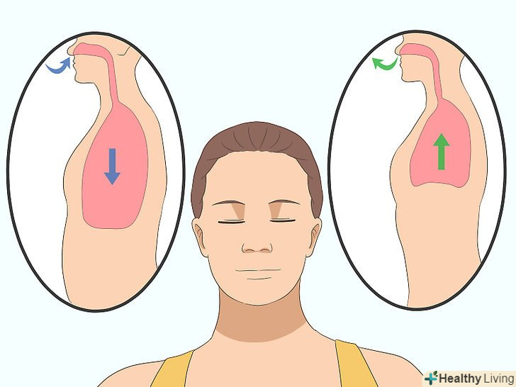 Закрийте рот і почніть вдихати через ніс.таким чином простіше контролювати температуру повітря і відсівати дратівливі речовини для ефективності дихання. Намагайтеся взагалі не дихати ротом ні під час глибоких вдихів, ні в цілому.[7]- Тримайте рот закритим, щоб дихати через ніс. Вегетативна нервова система продовжить регулювати дихання через носові отвори.