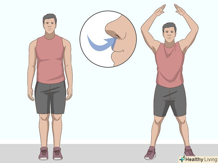 Вдихайте через ніс, а не ротом, під час високоінтенсивних вправ. вправи на зразок Берпі і стрибків на місці зі зміною положення рук і ніг вимагають великої кількості кисню, але якщо робити вдих через рот, тоді здатність організму конвертувати кисень в енергію знижується. Так, вдихайте через ніс під час таких вправ, щоб краще насичувати організм киснем і довше не втомлюватися.[17]Порада: якщо вам складно дихати через ніс, то спробуйте знизити інтенсивність або тривалість вправ, поки дихання не стабілізується.