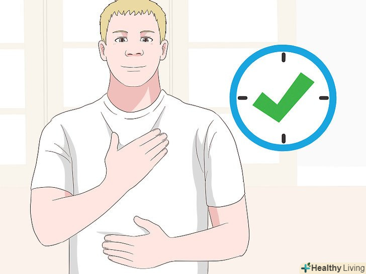 Періодично спостерігайте за диханням протягом дня, щоб помічати зміни.люди зазвичай не замислюються під час дихання, тому помітити зміни непросто. Виберіть конкретні моменти протягом дня (наприклад, вранці і в обід), щоб контролювати характер дихання. Якщо регулярно перевіряти дихання в один і той же час, цей процес перетвориться в звичку, яка не буде вимагати зусиль.[4]- Усвідомлене спостереження допомагає вносити зміни. Наприклад, якщо ви помітите неглибоке дихання в такі моменти, то почнете тут же дихати глибоко за допомогою діафрагми.