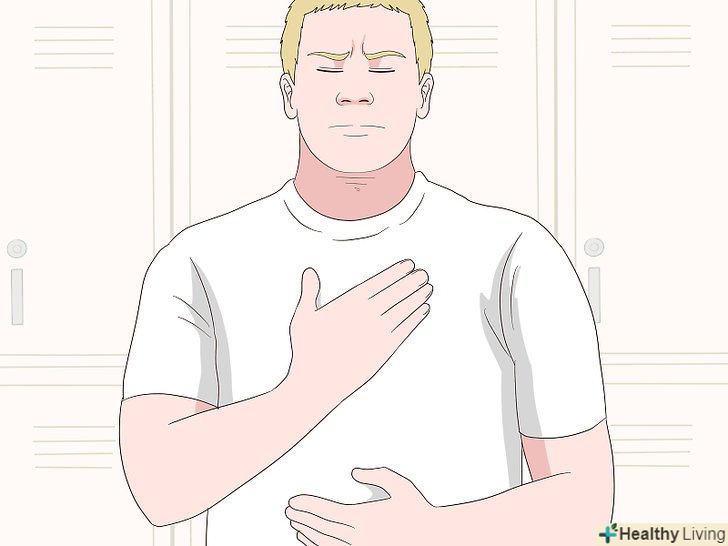 Виконуйте заспокійливі дихальні вправи в моменти тривоги або стресу.глибоке цілеспрямоване дихання допомагає заспокоїтися і ясно мислити в напружених або лякаючих ситуаціях. Щоб спростити завдання, випробуйте пару дихальних вправ, які можна буде використовувати в необхідні моменти.[5]- Наприклад, глибоко вдихайте через ніс і шумно видихайте, щоб швидко розслабитися в разі напруги.
