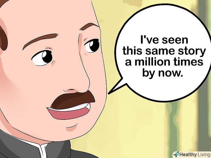 Придумайте свою історію, що пояснює ваше безсмертя.якщо ви створюєте свого власного персонажа, то вам слід пояснити, яким чином він став безсмертним. У спілкуванні з іншими людьми можна давати тонкі натяки на джерело свого безсмертя. Залучіть на допомогу різні міфи про безсмертя з усього світу, щоб придумати власну історію.[9]- У 475 році до нашої ери Китайські алхіміки вірили, що конкретні гриби здатні допомогти людині стати безсмертним. Можна послатися на ці "прокляті гриби" і поскаржитися про те, що вам "взагалі не слід було їх їсти".