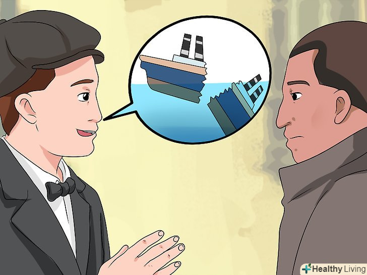 Описуйте події минулого в найдрібніших подробицях.підтягніть свої знання з історії або, як мінімум, навчитеся створювати задумливий погляд, коли хтось піднімає цю тему. Вивчіть історію того часу, до якого відноситься ваш персонаж, і Прикиньтеся, що ви були очевидцем відбувалися тоді подій. Опишіть їх в найдрібніших подробицях з додаванням вигаданих розмов, які, наприклад, мали місце під час стародавнього бою.- Припустимо, ви граєте роль пасажира"Титаніка". Почитайте книги і подивіться документальні фільми про" Титаніка " і включіть в свої розмови опис цього корабля з великою кількістю подробиць.