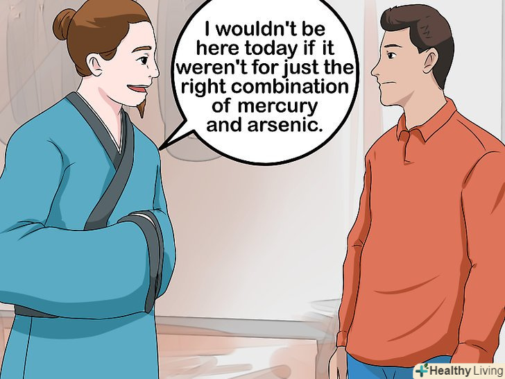 - Також алхіміки століттями намагалися створити еліксир життя з використанням ртуті і миш'яку. Пошліться на вживання напою з цими інгредієнтами. Наприклад, скажіть:"я б не був зараз разом з вами, якби не вдале поєднання ртуті і миш'яку".