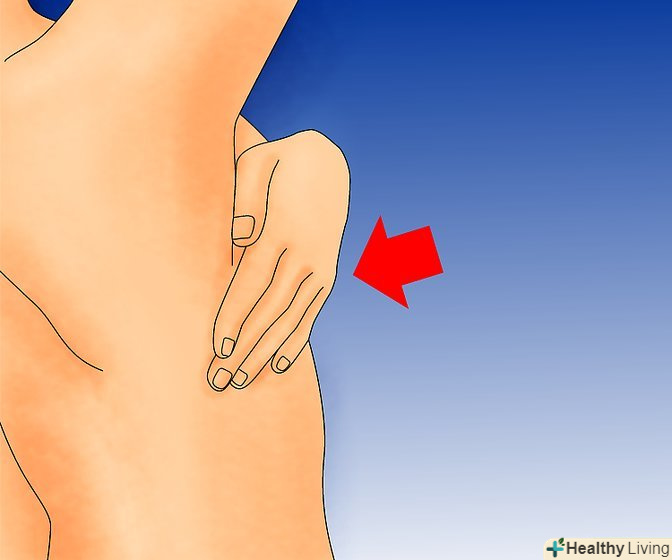 Опустіть руки вниз і відведіть їх назад.щільно притисніть руки до стегон, щоб розправити груди. Огляньте груди: чи немає на ній зморщування шкіри або інших незвичайних змін в зовнішньому вигляді.[4]
