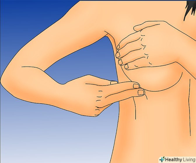 Раніше виявлення раку молочної залози має вирішальне значення в лікуванні цього захворювання. Тому жінкам різного віку рекомендується проводити самостійний огляд грудей раз на місяць.[1] якщо ви будете регулярно робити такий огляд, то ви будете добре знати свої груди і відразу помітите зміни, що з'явилися. Проводити самостійний огляд грудей слід перед дзеркалом, в душі і в позиції лежачи.[2] Read this article to learn how.