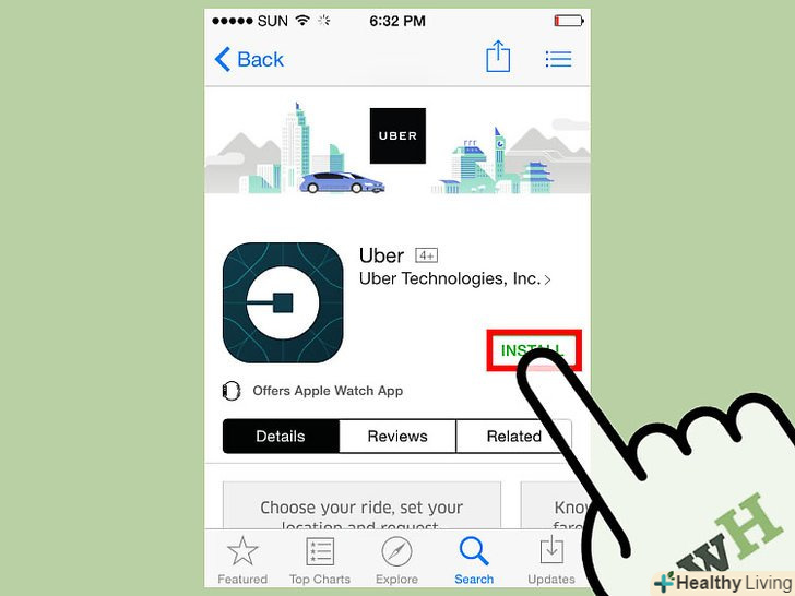 Скачайте і запустіть додаток «Uber " зApp Store або Play Маркета . торкніться «встановити», а потім «відкрити», коли додаток буде встановлено.