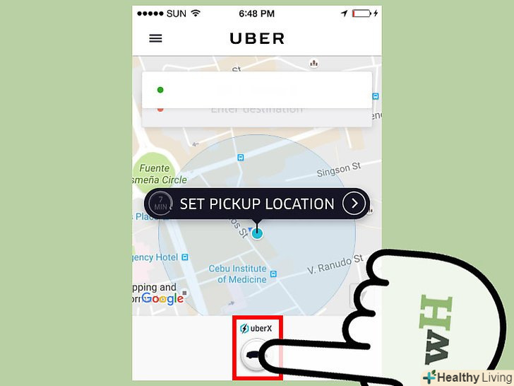 Натисніть на водія, щоб перевірити доступність кожної послуги. кожна послуга представлена у вигляді кнопки в нижньому ряду програми (uberX, uberXL, Select, Access або таксі). На шпильці вказано приблизний час, за яке найближча машина може до вас дістатися. Це також вказує на доступність послуги. Якщо послуга недоступна, на шпильці буде написано «доступних машин немає».- UberX-це стандартна послуга від Uber, uberXL надає поїздку в більшому автомобілі, Select — поїзди в розкішних автомобілях, а Access-для людей-інвалідів.
