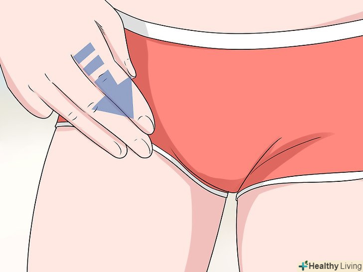 Промацайте пахові лімфовузли.прикладіть пальці до вигину між стегном і тазом. Сильніше натисніть на цей вигин, щоб відчути м'язи, кістка і жир. Якщо в цій же ділянці ви відчуєте явну припухлість, можливо, це запалений лімфовузол.[4]- Лімфовузли в цій області, як правило, розташовані відразу під великою зв'язкою, так що їх важко виявити в звичайному стані.