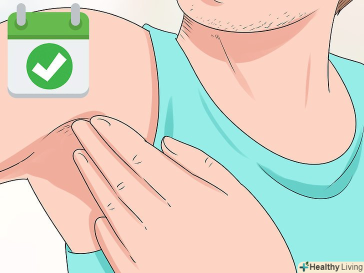 Намацайте лімфовузли в пахвових западинах.прикладіть пальці до центру пахв. Повільно опустіть пальці на кілька сантиметрів вниз, поки вони не опиняться відразу над грудьми. Лімфовузли в цій області розташовані в нижній частині пахв, поруч з грудною кліткою.[3]- Проведіть пальцями по всій цій області, злегка натискаючи на шкіру. Перемістіть їх до передньої частини тіла, потім ближче до спини, а потім на кілька сантиметрів вгору і вниз.