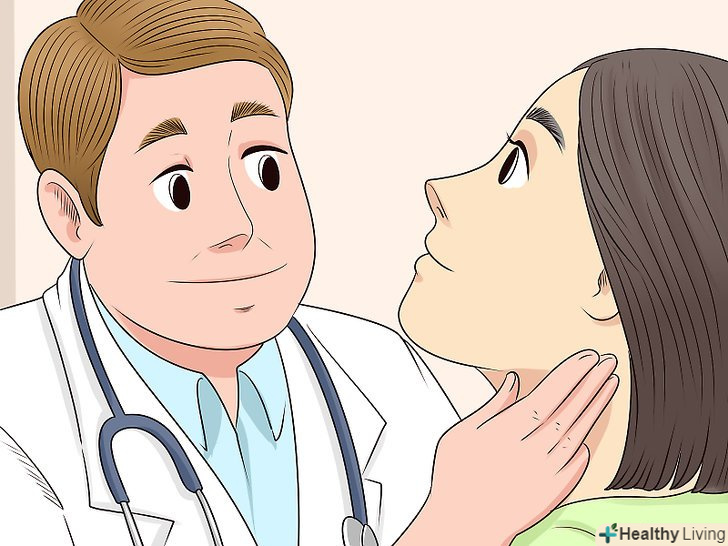 Дізнайтеся, чи викликане збільшення лімфовузлів інфекцією.Дозвольте лікарю промацати запалені лімфовузли, щоб підтвердити ваші підозри. Потім лікар перевірить у вас наявність бактеріальної або віруснуой інфекції, яка могла стати причиною запалення. Лікар візьме у вас аналіз крові або мазок з горла на бакпосев.[9]- Вас також перевірять на найбільш поширені захворювання і віруси, які призводять до запалення лімфовузлів.
