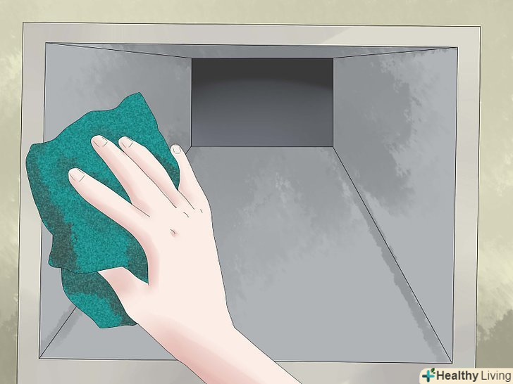Використовуйте ганчірку, щоб протерти стінки воздуховода і області вентиляції з теплою водою і миючої сумішшю.використовуйте ліхтарик, щоб перевірити наявність цвілі, якщо вона є – протріть її оцтом і обприскати антисептиком згідно з інструкцією. Використовуйте паперові рушники, щоб протерти стінки. Дайте висохнути.