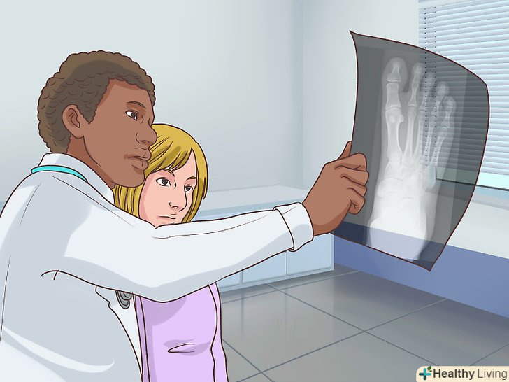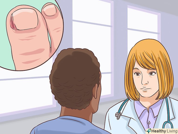 Зверніться за медичною допомогою, якщо кровотеча або біль не вщухають.якщо кровотеча не припиняється або посилюється після декількох хвилин постійного натискання, або якщо область навколо нігтя болить так, що ви не можете ходити, то негайно зверніться за медичною допомогою. Можливо, шкіра, кістки та/або нерви під нігтем пошкоджені.[7]- Зверніться за медичною допомогою через нігтя, який розщеплений у нігтьового ложа, якщо у вас діабет або нервове захворювання.[8]