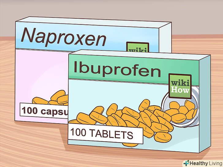 Використовуйте безрецептурні знеболюючі, щоб впоратися з болем.якщо палець продовжує хворіти, використовуйте безрецептурні знеболюючі, наприклад, аспірин або ібупрофен, щоб впоратися з болем або запаленням. Дотримуйтесь рекомендацій щодо дозування на упаковці і порадьтеся з лікарем перед початком прийому нового знеболюючого.[10]- Не давайте аспірин дітям або підліткам. Використовуйте парацетамол або ібупрофен.[11]