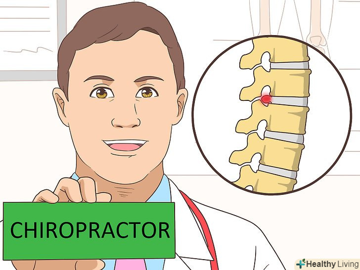 При проблемах з хребтом зверніться до мануального терапевта.у разі нерівного або пошкодженого (наприклад, при грижі міжхребцевого диска) хребта можна вдатися до послуг мануального терапевта, щоб він допоміг усунути причини спазмів м'язів спини.[12]- Як правило, мануальні терапевти займаються мануальним виправленням хребта. Крім того, для стимуляції м'язів і нервів лікар може використовувати терапевтичні вправи, масаж та інші методи лікування.