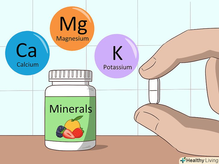 Подбайте про те, щоб ваш раціон містив всі необхідні поживні речовини.дефіцит кальцію, магнію або калію може призводити до більш частих м'язових спазмів. При нестачі мікроелементів спазми можуть тривати навіть в тому випадку, якщо ви проходите курс лікування у фізіотерапевта або мануального терапевта.[16]- Віддавайте перевагу натуральним джерелам цих мікроелементів. Багато кальцію міститься в молочних продуктах, в той час як банани і картопля багаті калієм.