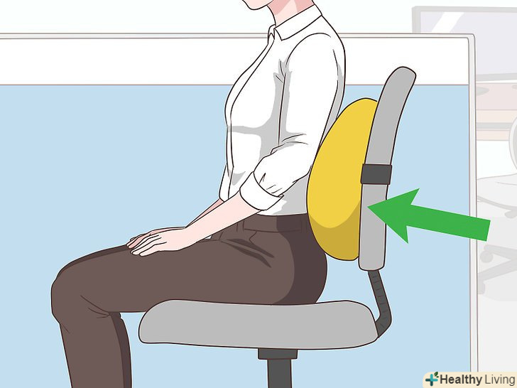 Використовуйте підтримуючу подушку для попереку, коли сидите.підкладайте подушку між попереком і спинкою крісла — це допоможе вам прийняти правильну поставу. Використовуйте подушку в тих випадках, коли працюєте за письмовим столом або проводите багато часу за кермом автомобіля. Хоча б раз на годину вставайте і трохи походжайте. Намагайтеся не сидіти занадто довго.- Не сутультесь, коли сидите.