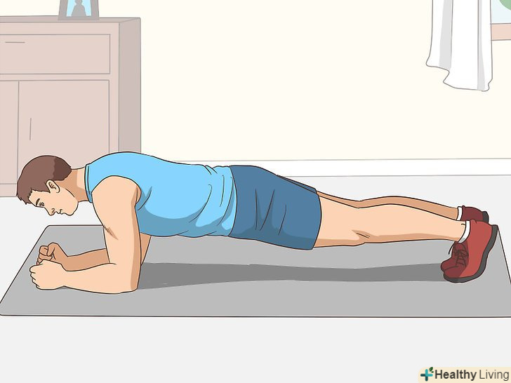Після того як спазм пройде, почніть займатися силовими вправами, щоб зміцнити м'язи кора.ці м'язи виконують роль природного корсета, який утримує хребет і спину в прямому положенні і допомагає зберегти правильну поставу.міцні м'язи кора допоможуть вам запобігти спазми спини в майбутньому.[19]- Планка являє собою базову вправу для зміцнення м'язів кора, яке не вимагає будь-яких додаткових пристосувань. Ляжте на живіт і покладіть на підлогу лікті і передпліччя. Упріться в підлогу носками ніг і передпліччями і підніміть тіло. Напружте при цьому м'язи кора. Для початку спробуйте утримувати таку позу протягом 20 секунд.