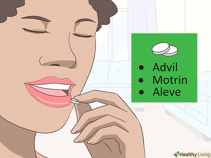 Приймайте відпускаються без рецепта знеболюючі засоби.нестероїдні протизапальні препарати (НПЗП) допомагають зняти біль і запалення. До поширених безрецептурних НПЗП відносяться ібупрофен ("Нурофен") і напроксен ("алів").[3]- Можна також зняти біль за допомогою парацетамолу ("Панадола"). Хоча цей препарат і не має протизапальну дію, він рідше викликає розлад шлунка.