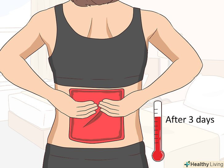 Через 72 години почніть прикладати теплі вологі компреси.набряк і запалення повинні пройти через 3 дні. Після цього можна використовувати теплі компреси, які допоможуть поліпшити кровообіг і розслабити м'язи. Використовуйте стандартну грілку або приймайте теплі ванни.[5]- Крім тепла важлива волога, так як вона допомагає запобігти зневоднення. Підтримка водного балансу необхідно для того, щоб прискорити одужання і запобігти повторні спазми.