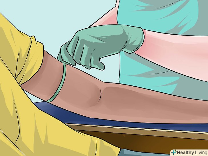 Знайте, як саме беруть кров.цей процес скрізь виглядає однаково. У вену вставляється голка зі знімною пробіркою. Коли пробірка заповнюється, її відокремлюють, і вона закривається автоматично.- Якщо потрібно взяти кілька пробірок крові, голку не дістають, а просто з'єднують її з новою пробіркою. Коли всі пробірки будуть зібрані, медсестра витягне голку і зав'яже вам руку еластичним бинтом. Вас попросять не знімати бинт півгодини.