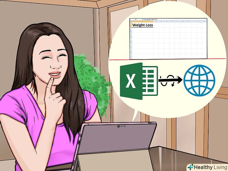 Змінюйте свою таблицю.перевага власної таблиці в тому, що ви можете додавати в неї додаткові значення на зразок частоти пульсу, об'єму талії, кров'яного тиску і навіть настрою.[15]