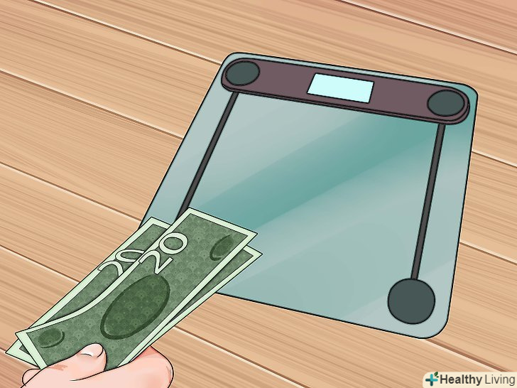 Купуйте ваги.якщо ви хочете кожен день зважуватися вдома, то вам потрібні власні ваги. Найпоширенішими є цифрові ваги; після зважування вони виводять на свій невеликий екран Числове значення маси в встановлених одиницях.[9]- Також бувають колонні ваги з балансиром, але вони занадто високі і громіздкі. Такими вагами буде незручно користуватися у ванній кімнаті середнього розміру.