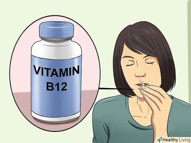 Приймайте вітамінні добавки.оніміння може бути викликане нестачею вітамінів, зокрема вітаміну B12. Здайте аналіз крові на вітаміни і мікроелементи, і якщо у вас виявиться дефіцит вітамінів, почніть приймати рекомендовані лікарем харчові добавки.[12]