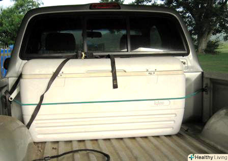 - встановіть великий радіатор у задній частині вантажівки для перевезення продуктів. Це допоможе підтримати постійну температуру і не дасть вантажу вилетіти з кузова під напором вітру.A large cooler is fine for hauling small items home from the store.