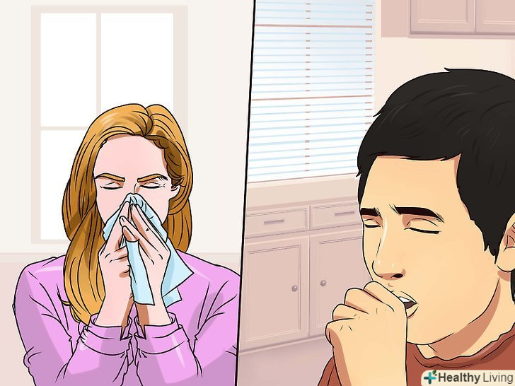 Коли кашляєте або чхаєте, прикривайте рукою рот і ніс.якщо ви все ж захворіли на грип, дотримуйтесь норми пристойності і прикривайте рот і ніс під час кашлю або чхання. Якщо можливо, кашляйте і чхайте в хустку або в лікоть, щоб не бруднити самі руки.[41]- Коли ви прикриваєте рот і ніс, знижується ризик зараження грипом для оточуючих вас людей.