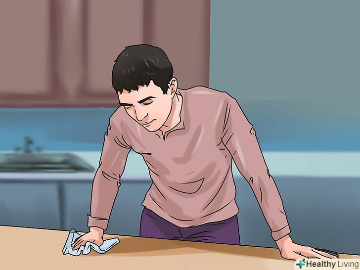 Часто дезінфікуйте місця загального користування в своєму будинку.шкідливі організми легко поширюються через такі приміщення, як ванні кімнати і кухонні поверхні. Регулярне очищення та дезінфекція цих просторів може допомогти запобігти поширенню вірусу грипу.[44]