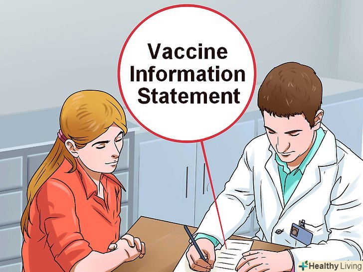 Поясніть пацієнту ризики та переваги вакцинації проти грипу.кожна людина, яка отримує щеплення, повинна бути ознайомлена з цією інформацією. Він повинен розуміти, який вид вакцини йому вводиться, і як вона діє, захищаючи його в період епідемій.[9]- Задокументуйте дату ознайомлення пацієнта з інформацією про вакцинацію. Занесіть ці дані в медичну карту (якщо можливо). Запитайте пацієнта, чи не виникло у нього будь-яких додаткових питань, перш ніж вводити йому вакцину. У медичній карті також важливо вказати термін придатності вакцини і номер її партії на той випадок, якщо в майбутньому буде потрібно дана інформація.