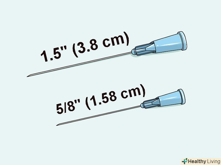 - Використовуйте голку довжиною 16 мм для дітей і дорослих з вагою менше 60 кг.при використанні невеликої голки сильно розтягніть шкіру в зоні ін'єкції.[18]