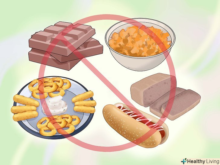 Не їжте прості цукри.цукор призводить до появи зайвої ваги, млявості і може знижувати якість роботи імунної системи.[15]- Пам'ятайте, що в деяких напоях міститься більше цукру, ніж здається. Вивчіть склад солодких газованих та інших напоїв, а також дізнайтеся розміри порцій в кожній упаковці, щоб знати, скільки цукру ви споживаєте.