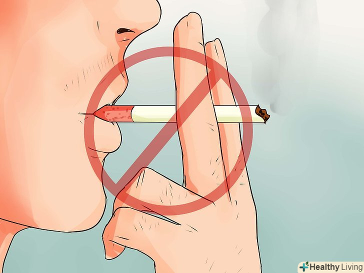 Уникайте сигаретного диму.безумовно, курити самому або самій не варто з безлічі причин, проте навіть близькість людей, що палять може негативно вплинути на імунітет.[5]- Якщо ви курите,відмовтеся від цієї звички.