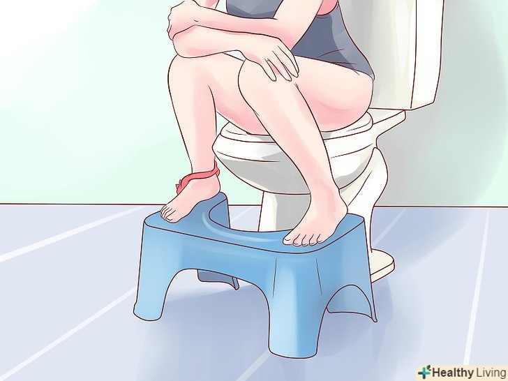 Змініть положення тіла під час дефекації.деякі люди визнають, що сидіння на унітазі - не найкраща поза для процесу дефекації. Багато з них виявили, що положення навпочіпки робить процес легшим. Коли ви сидите на унітазі, то не ставте ноги на підлогу. Замість цього, використовуйте підставки для ніг по краях унітазу або заберіться на унітаз з ногами. Підтягніть коліна якомога ближче до грудей, наскільки це можливо. Така поза збільшить тиск на кишечник і полегшить проходження стільця.- Ви можете підставити невелику табуретку в якості підставки для ніг.