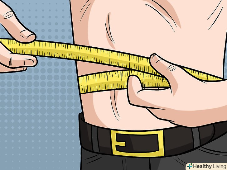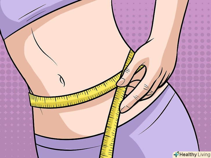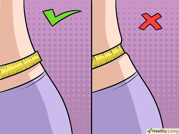 Виміряйте талію.вимірювання талії є обов'язковим для визначення відсотка жиру в організмі, так як саме в цій області вміст жиру може бути найбільшим.- Оберніть мірну стрічку навколо талії, на рівні пупка.