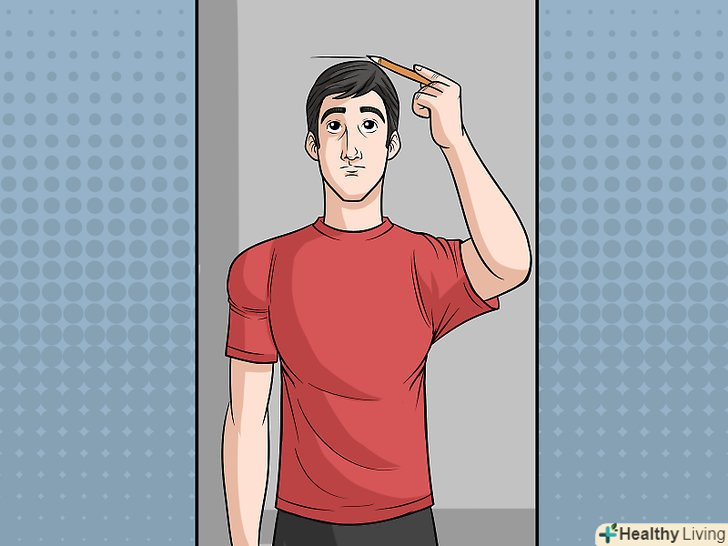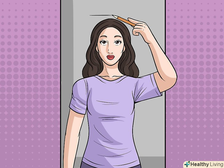 - Прикладіть лінійку до верхівки голови і присуньте її до стіни. Позначте це місце олівцем.