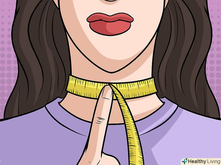 Виміряйте окружність шиї. насамперед необхідно виміряти окружність шиї. Дотримуйтесь цих інструкцій, щоб отримати більш точні виміри:- Розмістіть мірну стрічку під кадиком (гортань).