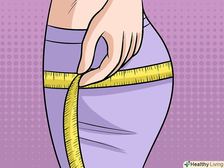 Виміряйте обхват стегон.у жінок на стегнах може перебувати більше тілесного жиру, ніж у чоловіків.- Оберніть мірну стрічку навколо стегон так, щоб захопити найширшу частину сідниць.