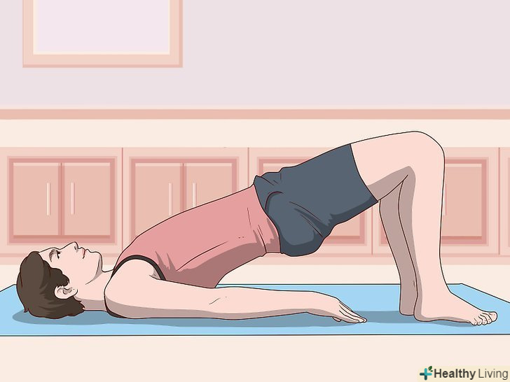 - Підніміть верхню частину тіла і вигніть спину, але не напружуйте живіт, так як це може чинити тиск на сечовий міхур.[5]