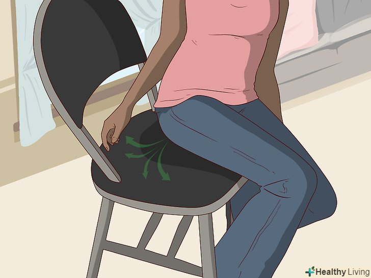 Змініть позу, щоб не було тиску на сечовий міхур.можливо, вам доведеться зробити це кілька разів, поки ви будете терпіти. Різні положення тіла можуть зняти деякий тиск з сечового міхура, завдяки чому йому буде простіше утримувати сечу. Спробуйте наступне: [4]- Сядьте прямо або відкиньтеся назад, коли сидите. Нахили вперед (особливо якщо на вас щільно сидять штани) будуть надавати більший тиск на сечовий міхур.