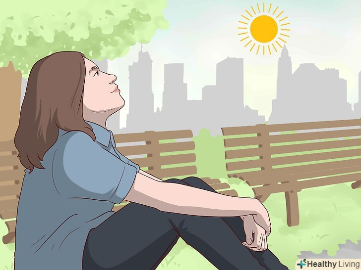 ПрактикуйтеУважність, концентруючись на інших аспектах теперішнього моменту.замість того щоб сидіти і думати про те, як сильно вам хочеться в туалет, зосередьтеся на диханні, на відчутті сонця на обличчі або землі під ногами. Налаштуйте розум на звуки дітей, що грають в сусідній кімнаті, або на вигляд і дзижчання бджіл серед весняних квітів.[8]- медитуйте, повторюйте мантру або виконуйте дихальну гімнастику.
