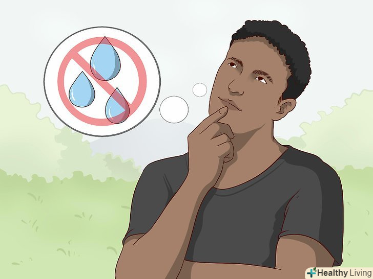 Не думайте про воду, водоспад або дощ.це не найкращий вибір, щоб відволіктися, коли необхідно справити малу нужду! Якщо ви не настільки вправні, щоб повністю концентруватися на щось на зразок капає крана, ви неминуче виявите, що ваш розум повертається до думок про те, як сильно ви хочете спорожнити сечовий міхур.[10]- Можливо, ваші друзі вважатимуть забавним описувати водоспади, річки і злив води в унітазі, якщо дізнаються, що вам потрібно «відлити». Спробуйте сказати: "добре, хлопці, дуже смішно. Я зрозумів", — і змініть тему. Якщо вони продовжать, спокійно відійдіть.