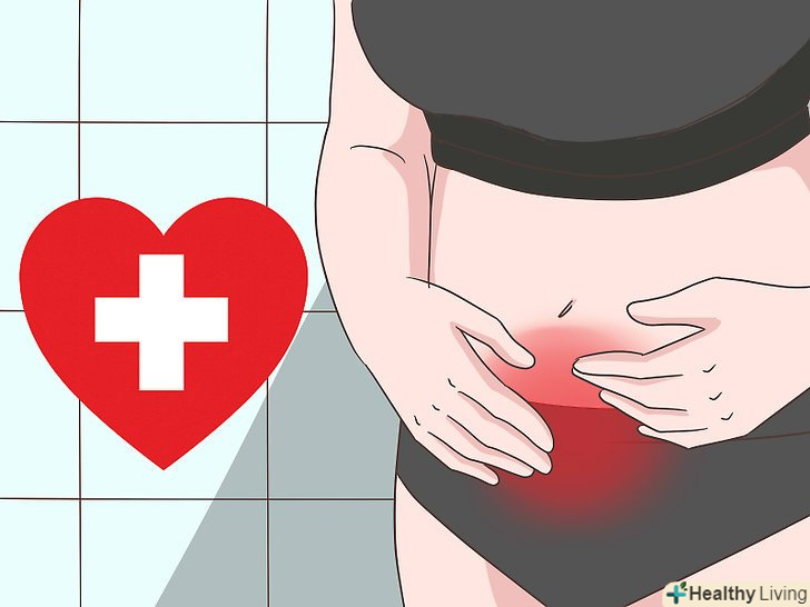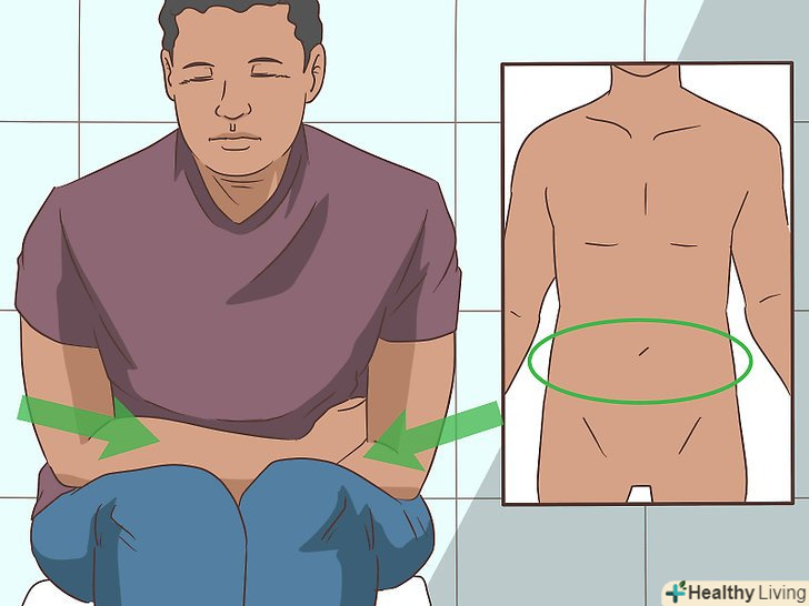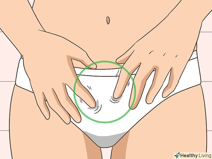 Натисніть на нижню частину живота.нахилившись вперед, покладіть руки на нижню частину живота і м'яко натисніть. Не тисніть безпосередньо на сечовий міхур, щоб не спровокувати відтік сечі назад до нирок.[2]