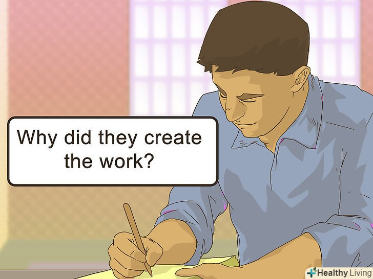 Спробуйте визначити мету роботи.іншими словами, що намагався сказати автор? Навіщо створив цю роботу? Спробуйте підсумувати своє бачення.