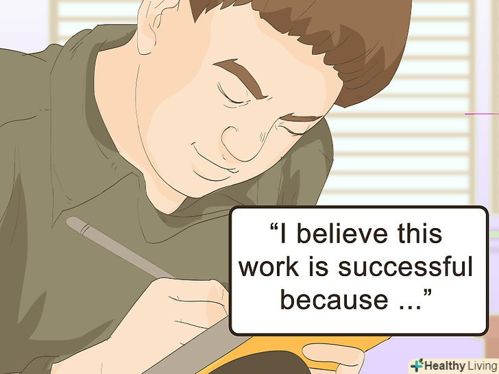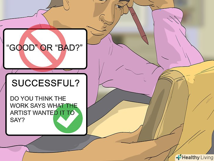 Оцініть, наскільки робота вдала на вашу думку.не обов'язково відносити твір мистецтва до категорій" добре "або"погано". Краще зосередитися на категорії "успішності". Наприклад, подумайте про наступне:- Наскільки успішно робота висловлює наміри автора?