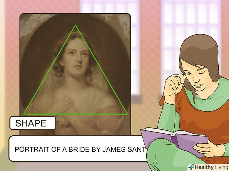 Зверніть увагу на використання форм.у роботі представлені геометричні форми з прямими лініями і досконалими вигинами або більш природні форми? Переважає одна конкретна форма або різні зразки?[7]- Форми відіграють важливу роль в абстрактних і репрезентативних роботах. Наприклад, на портреті нареченої кисті Джеймса Сента звертають на себе увагу трикутні форми, сформовані складками фати на плечах і руками, зімкнутими на грудях.
